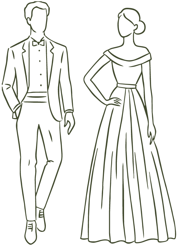 Be sure to rent your dress or suit ahead of time. We suggest VELVET for women and FORMAL for men.
